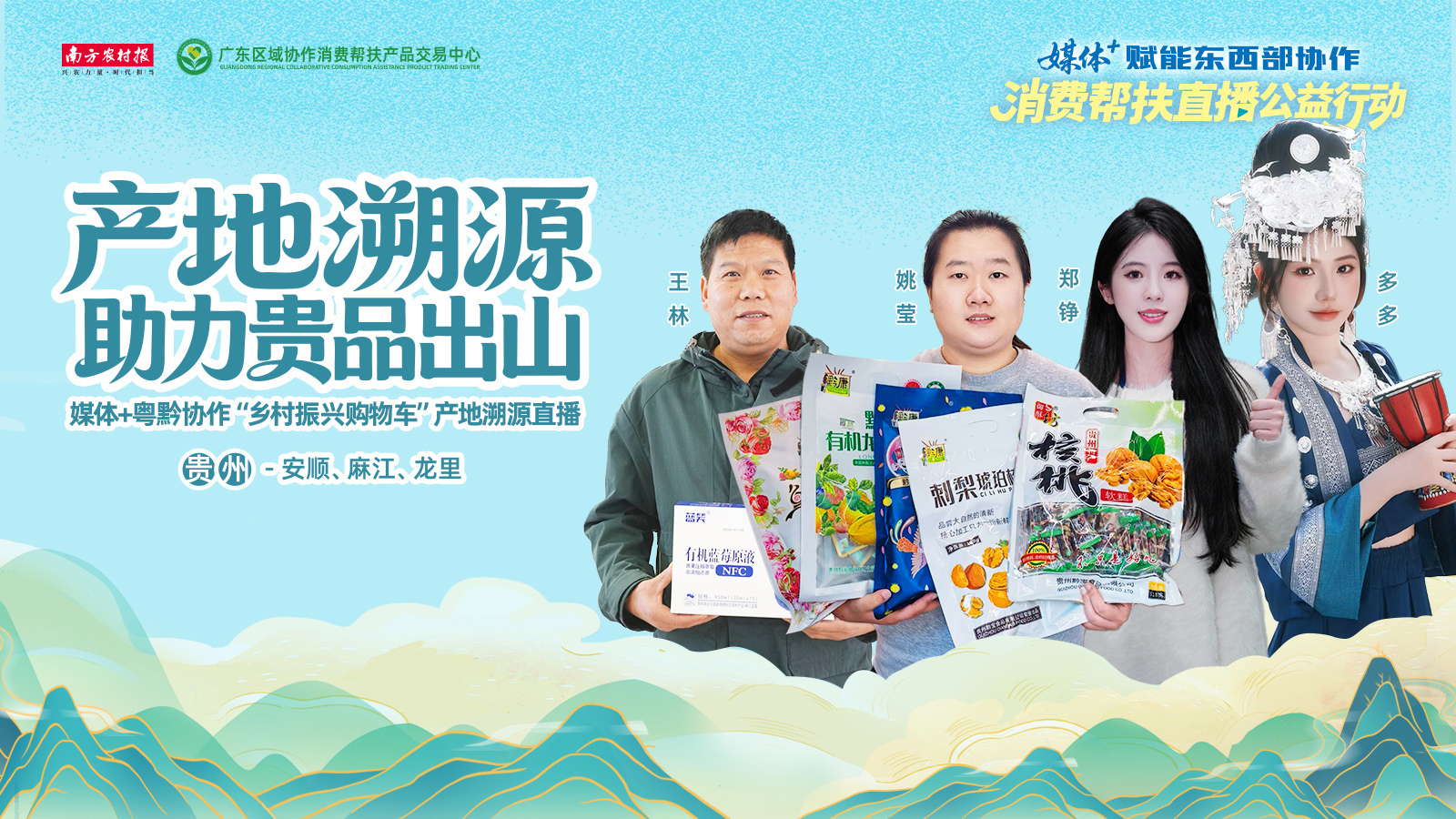 南方农村报社携手广东区域协作消费帮扶产品交易中心、抖音主播等,开展媒体+粤黔协作“乡村振兴购物车”产地溯源公益直播行动