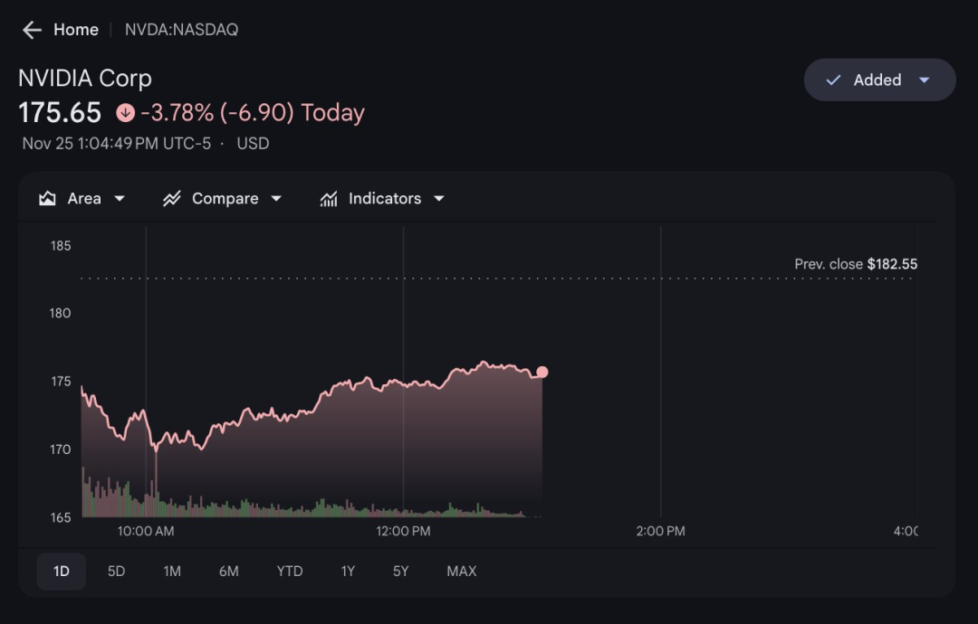 在谷歌将TPU卖给Meta后,英伟达的股价应声下跌。